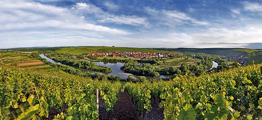 weite Weinberge, ausgedehnte Obstgärten und saftig grüne Mainauen. Ihre