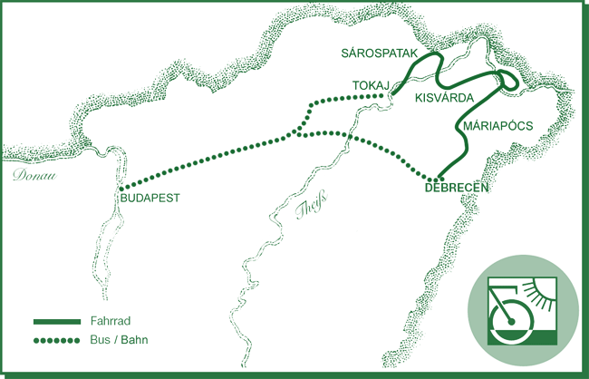 Radstrecke liegt in Nyírség, im „Land der Birken”. Besichtigung der